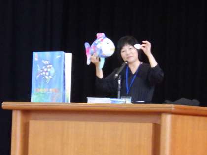 校長の話では、友達と仲良くするにはどんなことが大切かを考えさせてくれる絵本「にじいろのさかな」を読み聞かせしました。