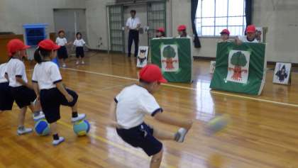「博士を救え!キックマン(ボールゲーム)」の授業です。