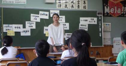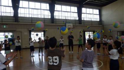 5年1組には、バスケット選手の栗原三佳さんが来てくださいました。