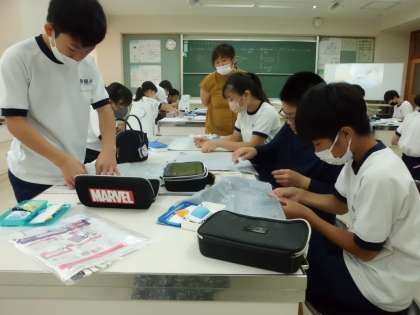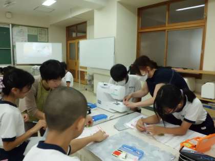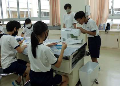 6年生は修学旅行に持っていく袋を家庭科で作ります。
