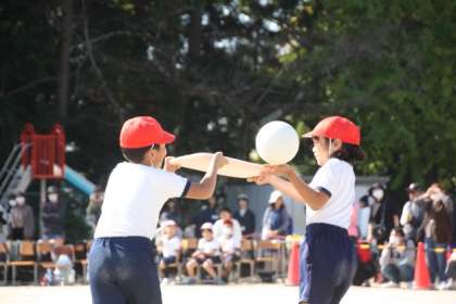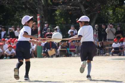 3・4年競遊「1,2の3でチャンプルー」では赤組白組どちらも協力し合い、バランスを取り合っていました。