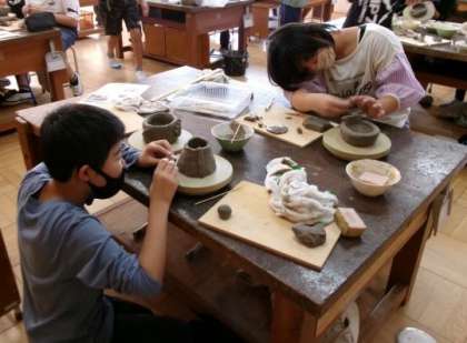 「気持ちいい」と土をひねりながら、手びねりや紐づくりで形を作っていきました。
