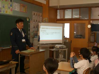 警察署の方に来ていただき、警察の仕事についてお話を伺いました。