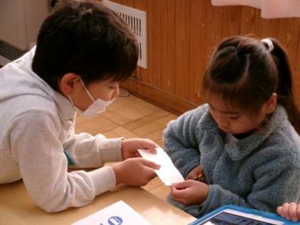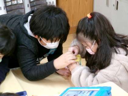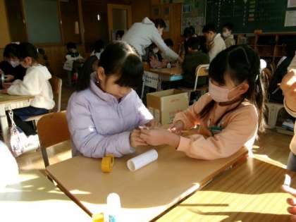 おもちゃの作り方・遊び方を、1年生に丁寧に教えてあげていました。