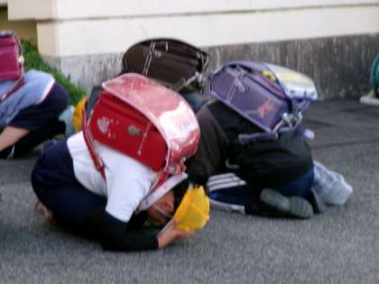 周囲を確認して、姿勢を低くし、頭を守る姿勢をさっと取りました。