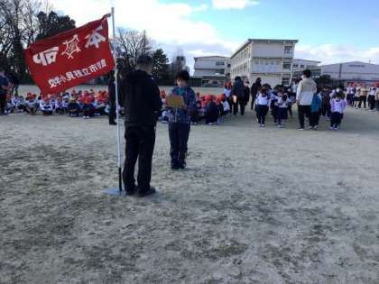 「能登半島地震は、震度5強の4分後に震度7、その後7回も震度5強〜6弱の地震が続きました。」と校長講話で伝えました。