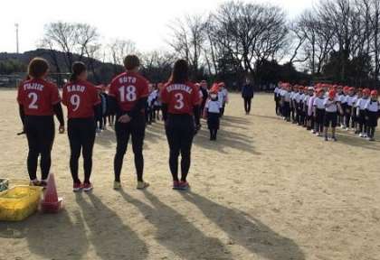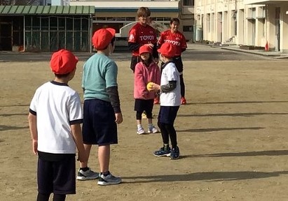 全国的に体力テストでソフトボール投げの値が低いのをアップさせようと、ボール投げ教室が開かれました。