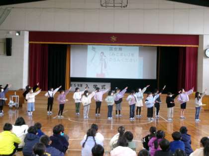 3年生が来年伝統芸能を体験する2年生にどんな演技があるかを披露しました。