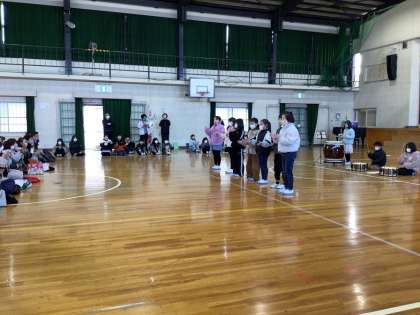 3年生の発表会は、地域の方から教えていただいた野見の伝統芸能の発表です。