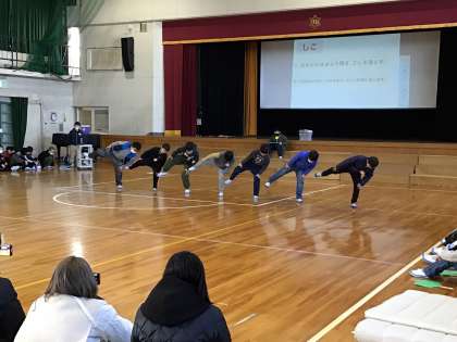 巫女舞・ちゃらぼこ・すもうの3つの伝統芸能で学んだことを、保護差の方々に発表しました。