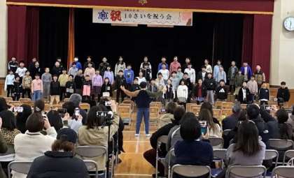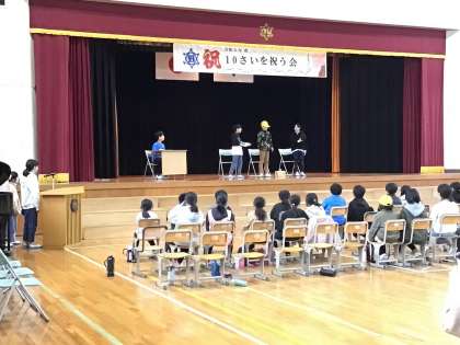 4年生は10歳を祝う会を発表会で行いました。
