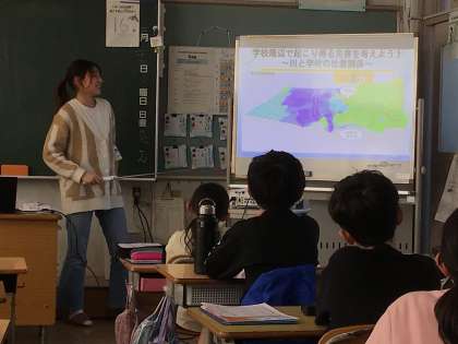 市役所と愛工大の方にご来校いただき、野見地区の防災について4年生が学習しました。