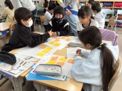 災害時を想像し、準備・行動を考え、付箋を貼ってグループで話し合いました。