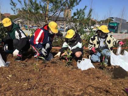 博物館の庭に、豊田市内の6年生が実から育てたどんぐりの苗を植樹するプロジェクトに、野見小も参加しました。