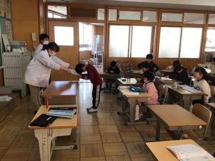 この日は、公務手さん・給食配膳員さんから「頑張ったね」と、1年2組が表彰を受けました。