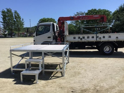 柴浦製鋼(株)さんが運動場の朝礼台を新品に取り換えてくださいました。