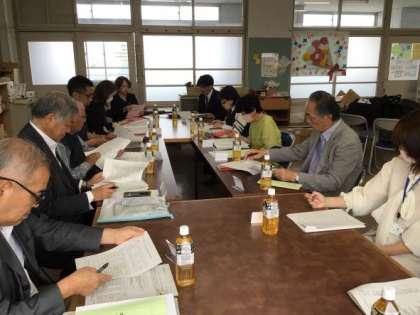 学区区長・副区長様、野見こども園長様、東海こども園長様をお招きして、登下校の様子や学区の交通安全・防災について話し合いました。