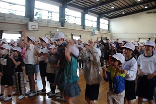 「1年生をむかえる会」のフィナーレでは、じゃんけん列車で全校が一つになりました。