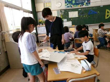 4年1組は、三角定規の角の大きさを調べる算数でした。