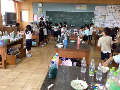 「コーラみたい」「ソーダみたい」とドリンクに似た色もできて、1年生は大はしゃぎでした。