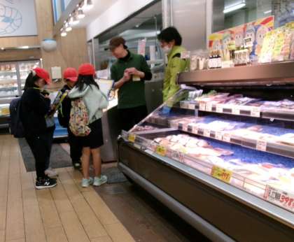 3年生が地域の人気スーパー「やまのぶ」に見学に行きました。