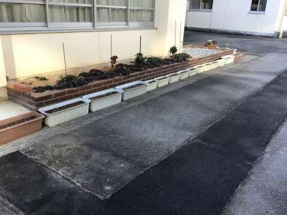 特色ある学校づくり推進事業として、体育館前、玄関前の学校花壇を整備しました。学校にお立ち寄りの際は、ご覧ください。