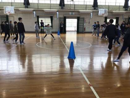 きれいになった体育館で最後はドッジボールをして親睦を深めました。