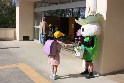 企画委員会が中心となり、昇降口等で「法眼まつたろう」に挨拶しようというキャンペーンを行っています。