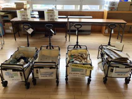 今年度初の「のみきんリサイクルの日」、子どもたちが持てる程度の資源をカバンに入れて家から持ってきました。ご協力ありがとうございました。