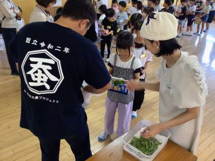 朝から校内整備員さんに桑の葉を取っていただき、お蚕を迎える準備をしました。