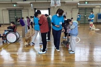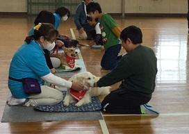 のぞみ・ひかり・こだま・つばさ学級が、動物愛護教室で犬との触れ合いの仕方を学びました。
