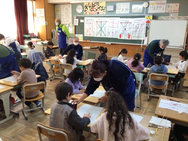 市のものづくりサポーターの方にお越しいただいて、1年生が凧作りをしました。