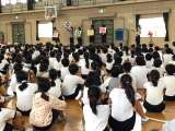 給食について1年生が栄養士から学びました。 給食センターで使われている鍋やしゃも...