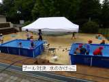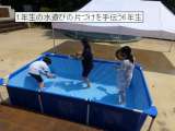 1年生の水遊び用プールは、水を抜く栓が上のほうにあり、水を全部抜くのが一苦労で...