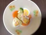 5年生はゆで野菜によるサラダ、6年生は野菜炒めでした。 「校長先生食べてください...