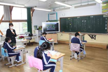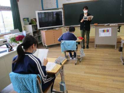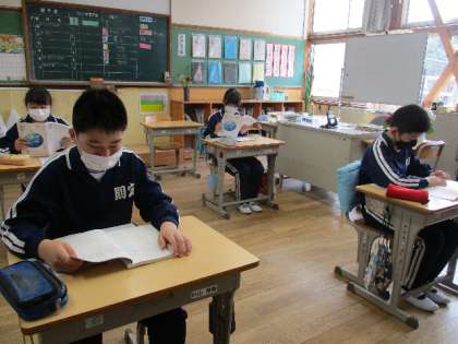 4月14日(木)、6年生は国語の学習で、先生が読む、詩「生きる」を聞き、感想をまとめました。真剣な様子で、ノートに向かう子どもたちです。