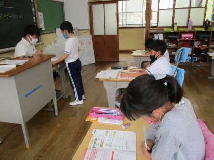 4年 算数 公開日 2022/04/14 更新日 2022/04/14 各学年から 4月14日(木)、4年生は算数の学習です。今まで習ったところの復習をしていきます。自分で進め、先生に確認してもらいました。 4年
