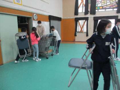 4月15日(金)、5・6年生が明日のPTA総会の準備をしてくれました。てきぱき、気持ちよく動いていました。