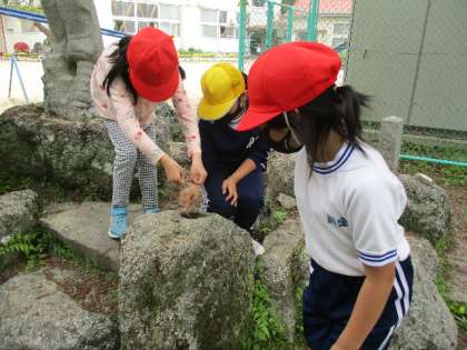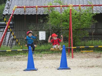 4月21日(木)、わく1の校庭です。それぞれの楽しみを見つけています。