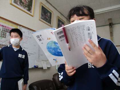 6年 朗読「生きる」 公開日 2022/04/25 更新日 2022/04/25 各学年から 4月25日(月)、6年生が校長室に来ても国語で学習した詩の朗読を聞かせてくれました。自分で読み方のポイントを考え、それを意識しながら、一人一人堂々とした朗読を聞かせてくれました。 ぜひ、全校に聞かせてほしいとリクエストしました。全校に6年生の朗読を聞かせてあげてくださいね。 6年
