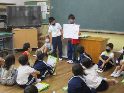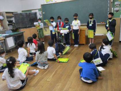 自分たちで部屋の場所やどんな部屋かを説明したり、クイズを出したりして楽しみました。2年生は、とても頼もしいお兄さん、お姉さんで、優しく、丁寧に1年生に説明をしていました。