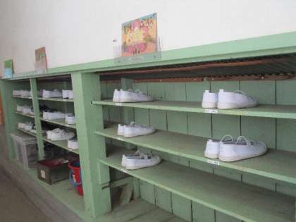 とてもきれいにそろえられたシューズがとても気持ちいいです。昨年度から引き続き、整理整頓をしています。