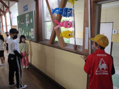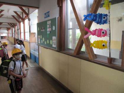 4月28日(木)、保護者の方にこいのぼりのバルーンアートをいただきました。