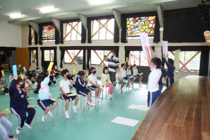 4月28日(木)、6年生が企画し、こつこつ準備してきた「ひよこ集会」を行いました。