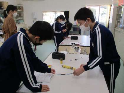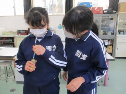 5月2日(月)、6年生は神妙な面持ちで理科の実験中です。実験の方法をみんなで確かめ合いながら、進めていきます。