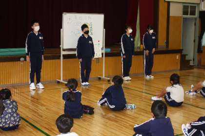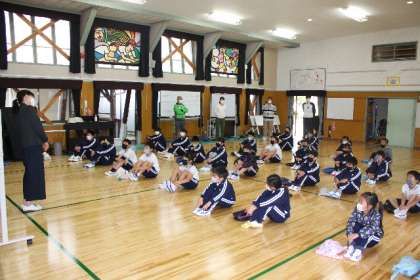 朝のスタートは全校集会です。朝のお話は、4月にできるようになったことがたくさんあること、そして、「風薫る5月」も少しずつ努力を重ねていこうと伝えました。