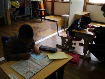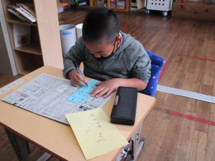 5月10日(火)、1年生へのメッセージカードを書いています。丁寧になぞりながら、完成させました。