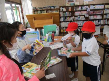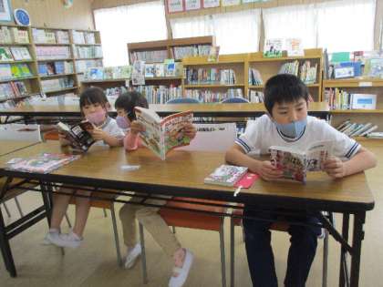 わく2の図書室 公開日 2022/05/12 更新日 2022/05/12 特別活動 5月12日(木)のわく2は、雨が降り出したので、外から帰ってきて図書室にくる子がたくさんいました。ライブラリー委員会の子が貸し出しの手続きをしています。高学年の横にちょこんと座って本を読みだす低学年がとてもかわいらしかったです。