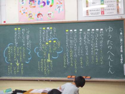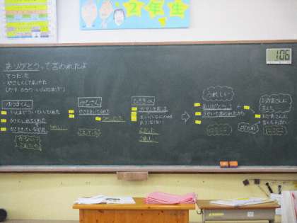 5月12日(木)、木曜日の5時間目は全校が道徳の時間です。(たまに変更もありますが)自分の心、友達の心と向かい合い、考える時間です。今回は、板書を中心に紹介します。