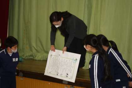 全校朝会 詩を読もう 公開日 2022/05/16 更新日 2022/05/16 学校行事 5月16日(月)、ディスカッションの前にはみんなで5月の詩「きりなしうた」を読みました。しっかり声を出すことは、今年の則定小のテーマでもあります。 1年、2年、3年、4年は、それぞれ学年毎に大きな声がでました。 高学年は一人ずつ読みます。急な挑戦でしたが、それでも一人一人声がしっかり出る高学年です。